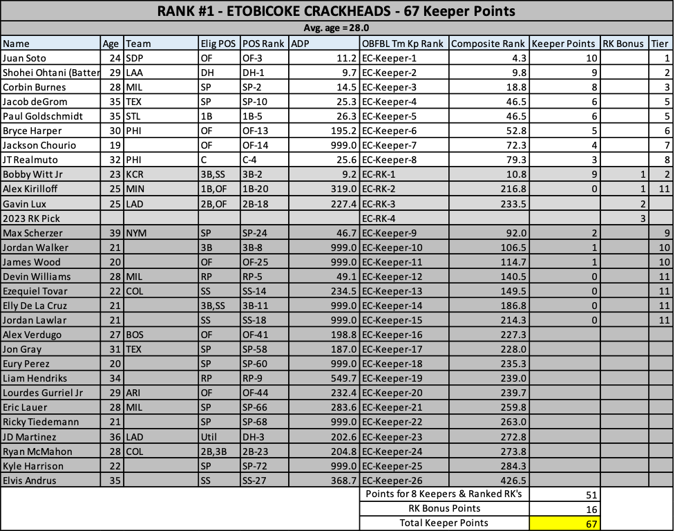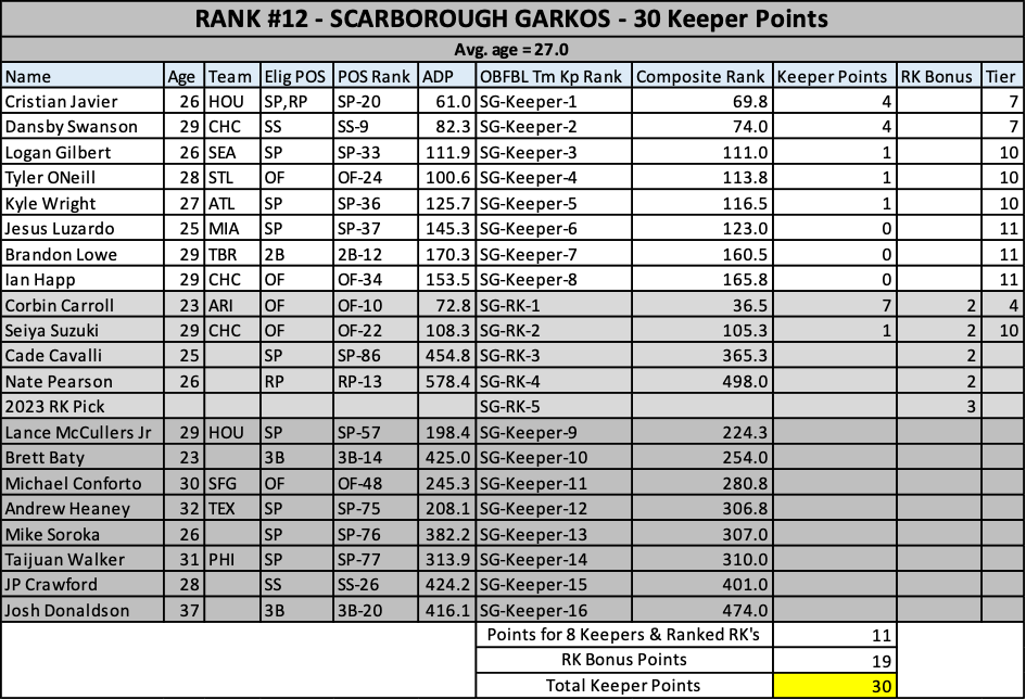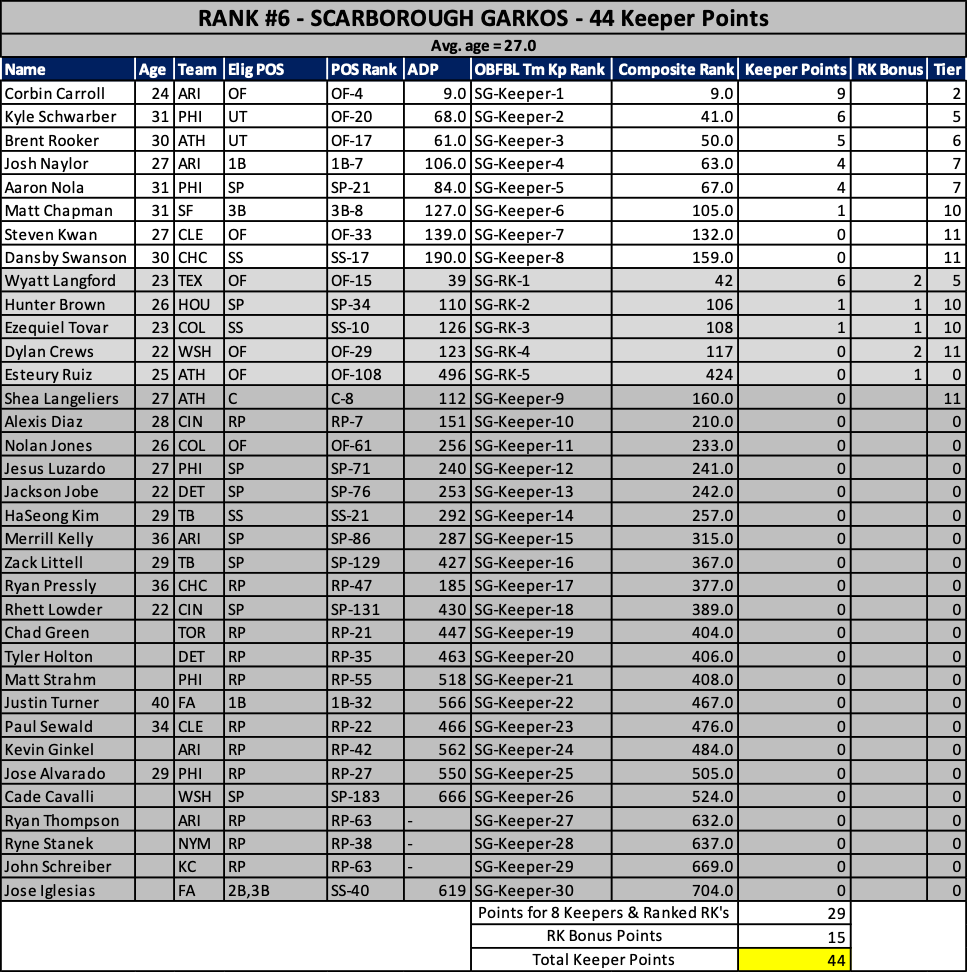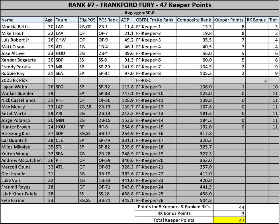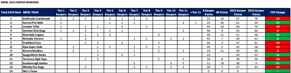 As we head into the 2023 keeper decisions, here’s how our rosters stacked up at years end….