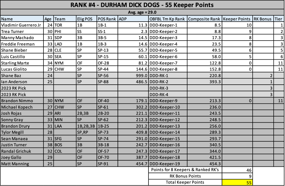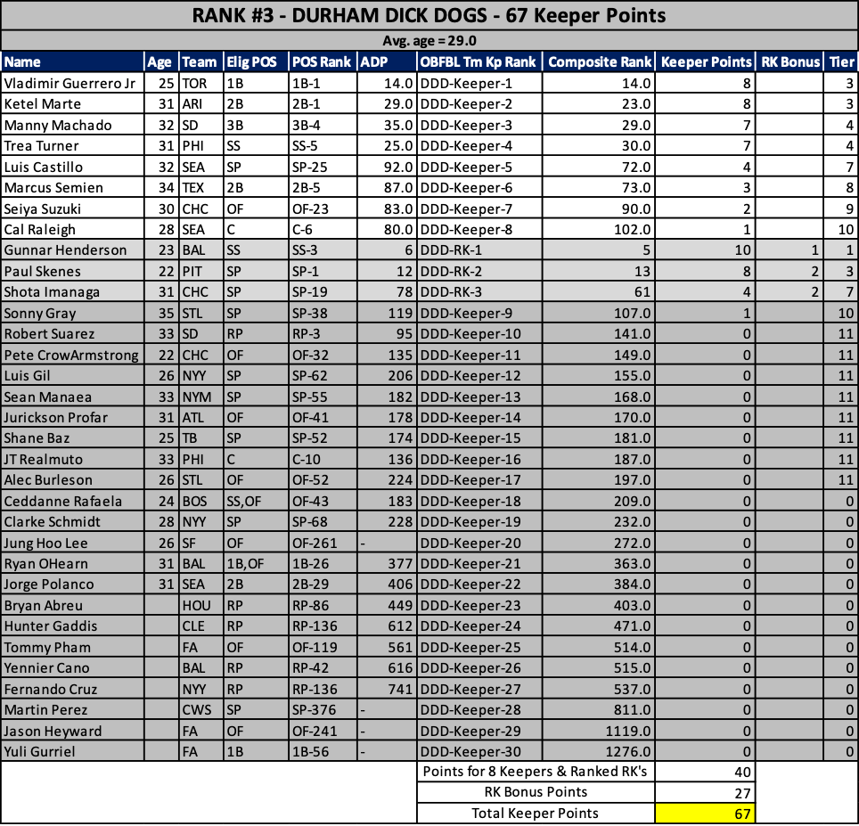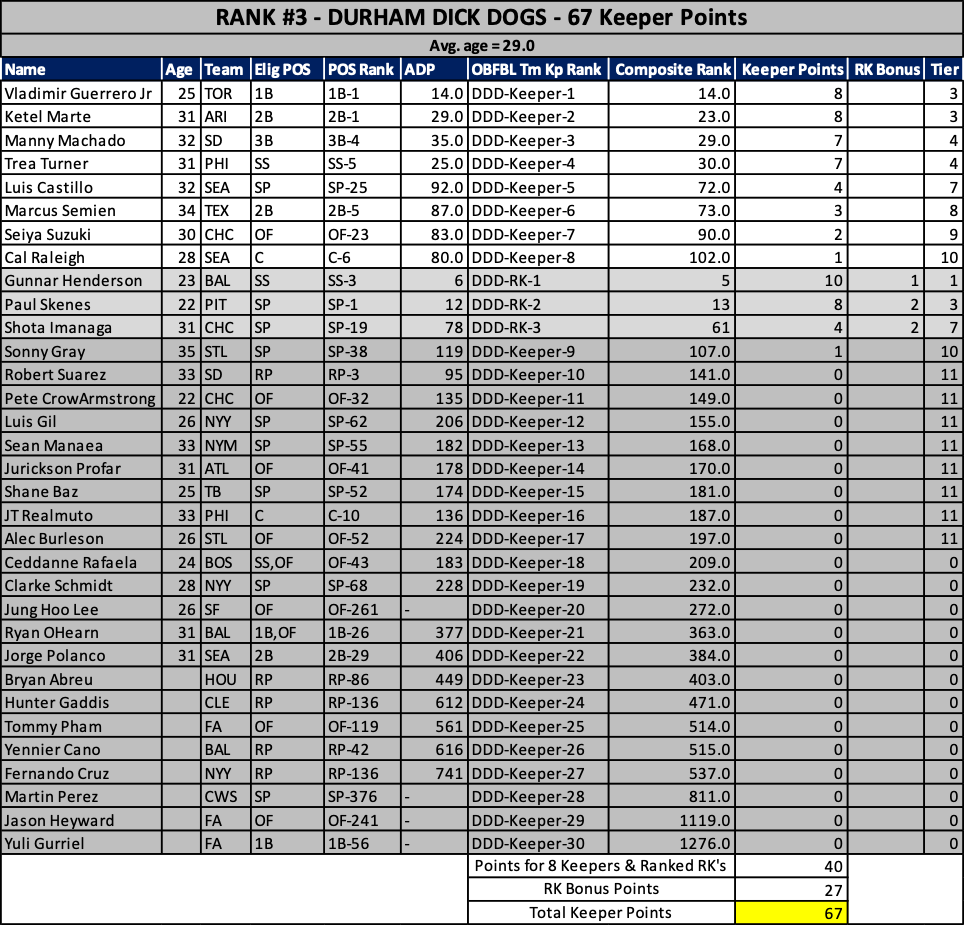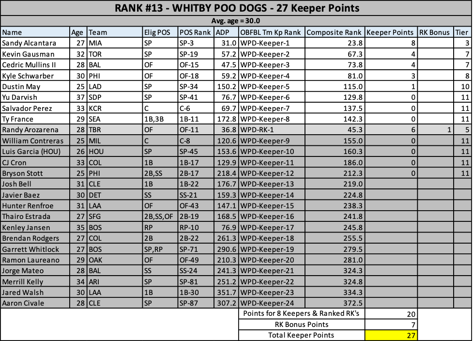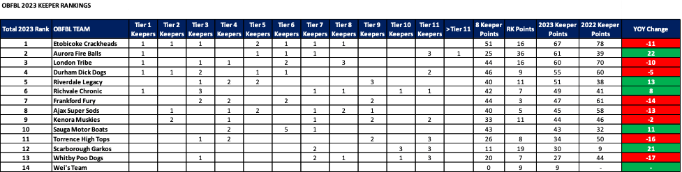 As we head into the 2023 keeper decisions, here’s how our rosters stacked up at years end….