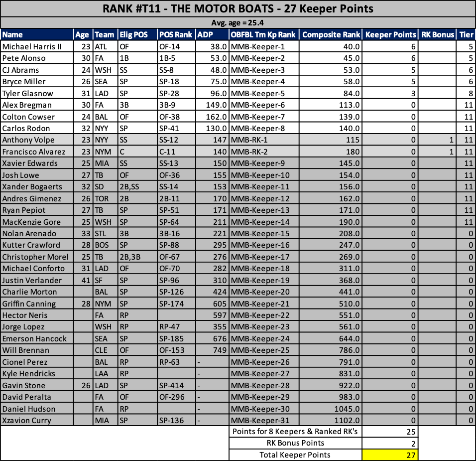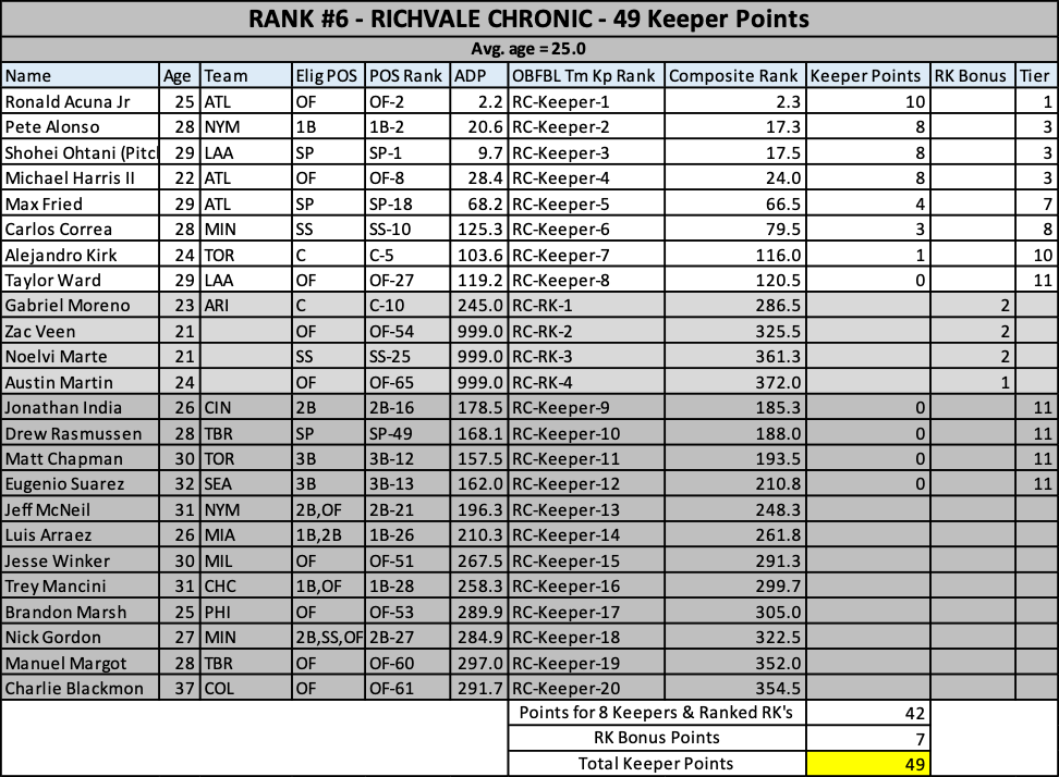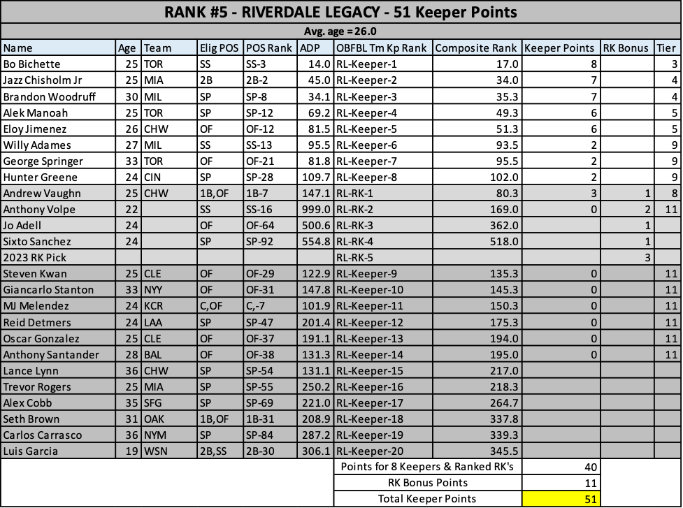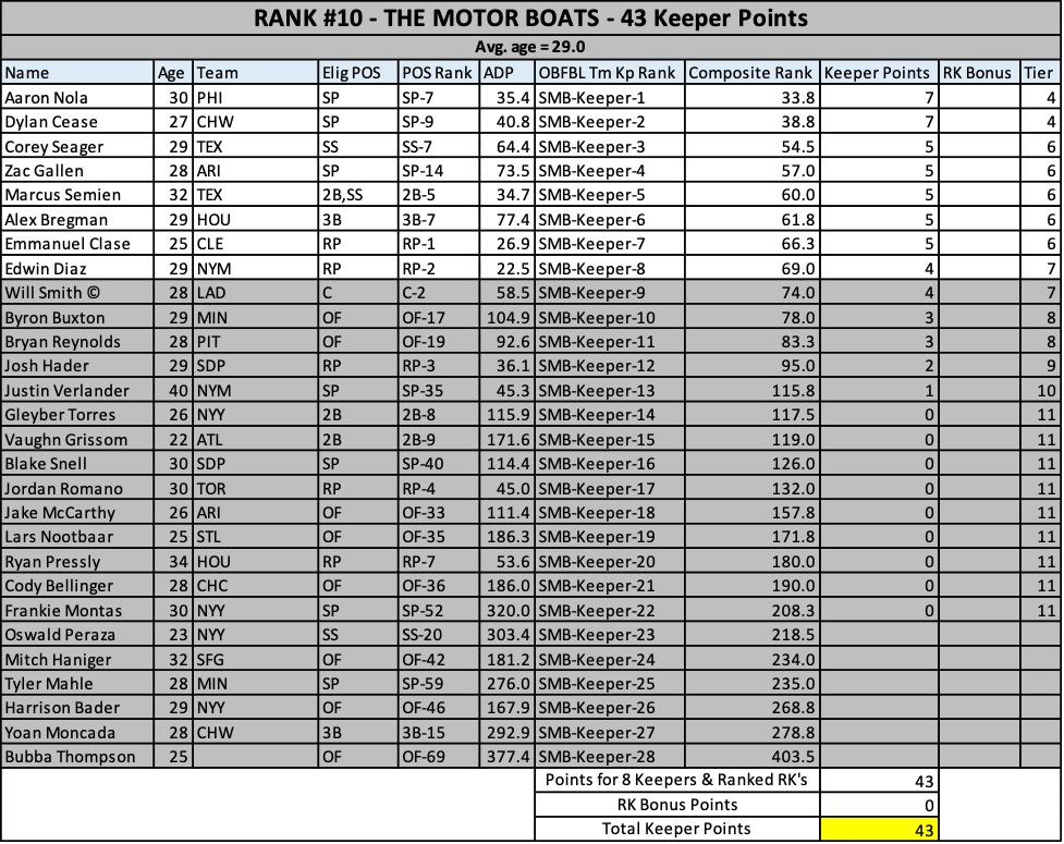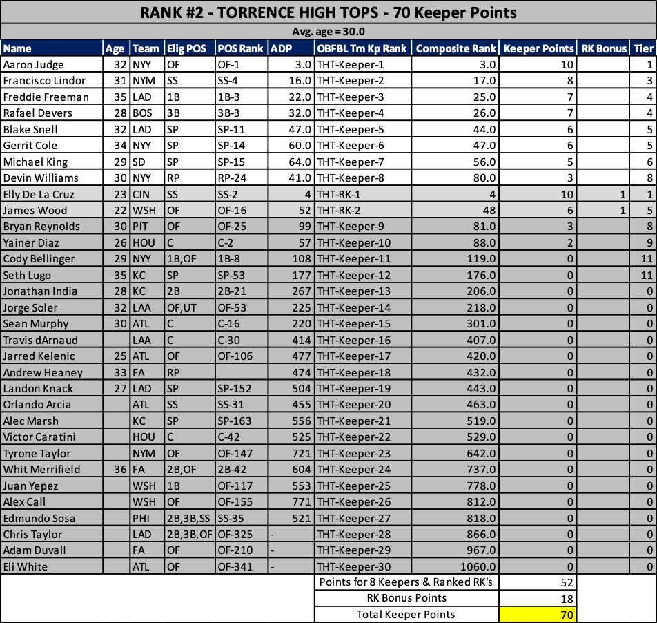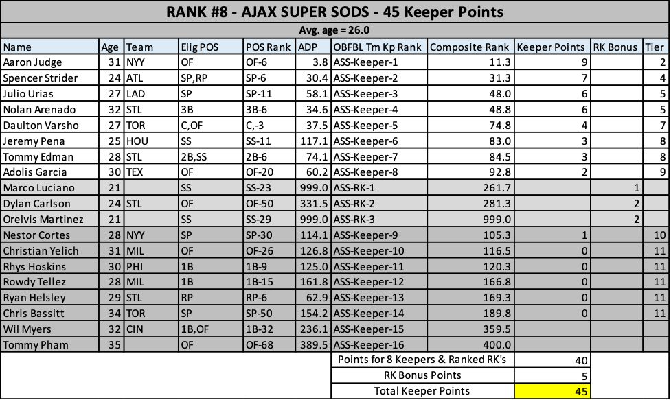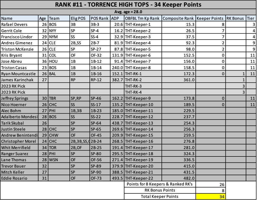 The oldest keeper set in the league! I’ll take Mookie and Sale off your hands if you want…please. Oooh, Santander…he’ll repeat his breakout right? RIGHT? No chance this team doesn’t finish 4th.