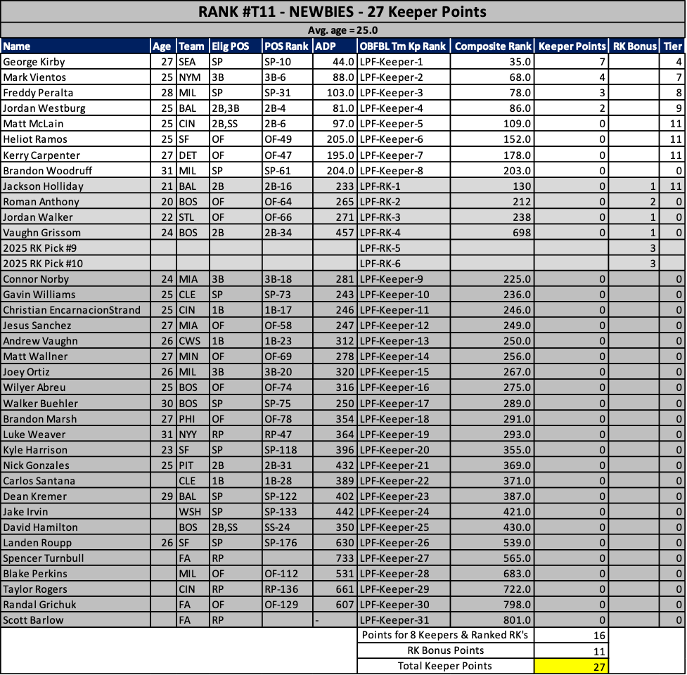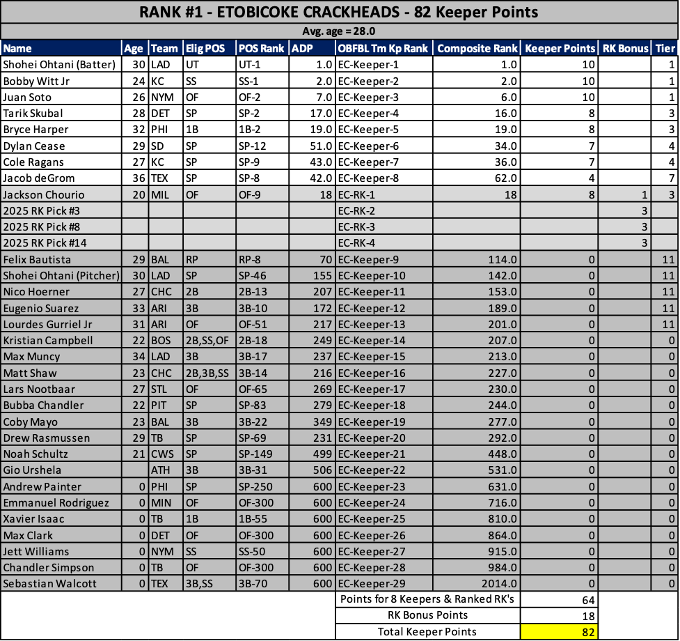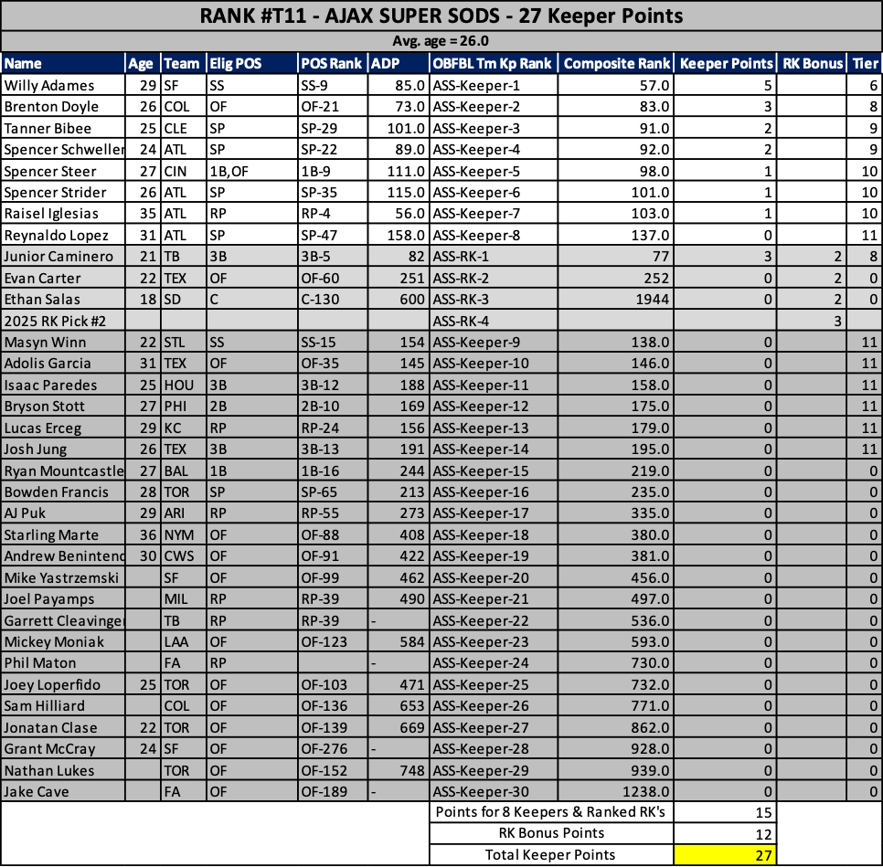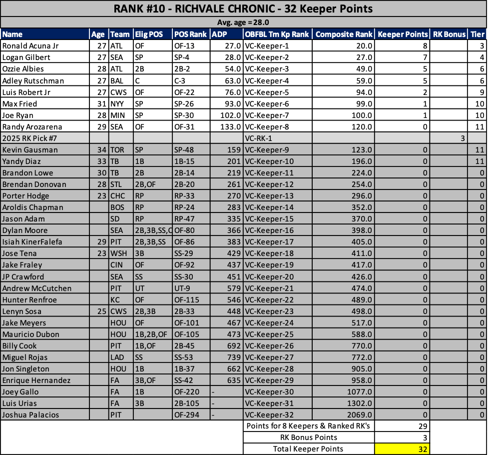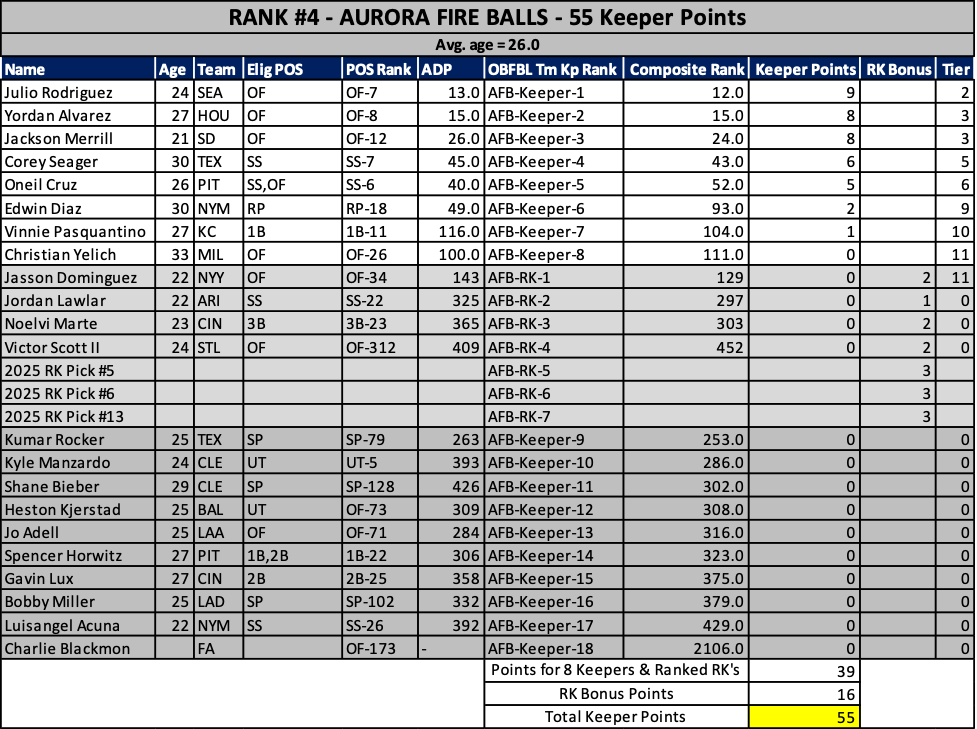 As we head into the 2025 keeper decisions, here’s how our rosters stacked up at years end…