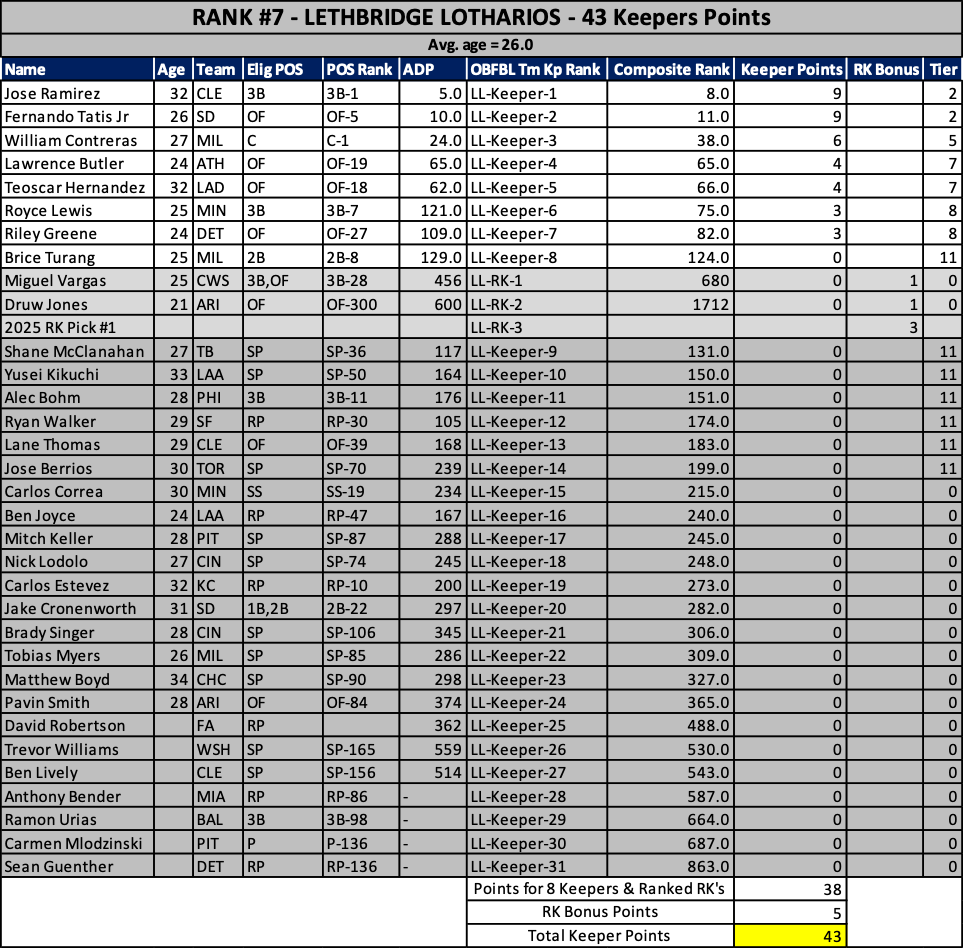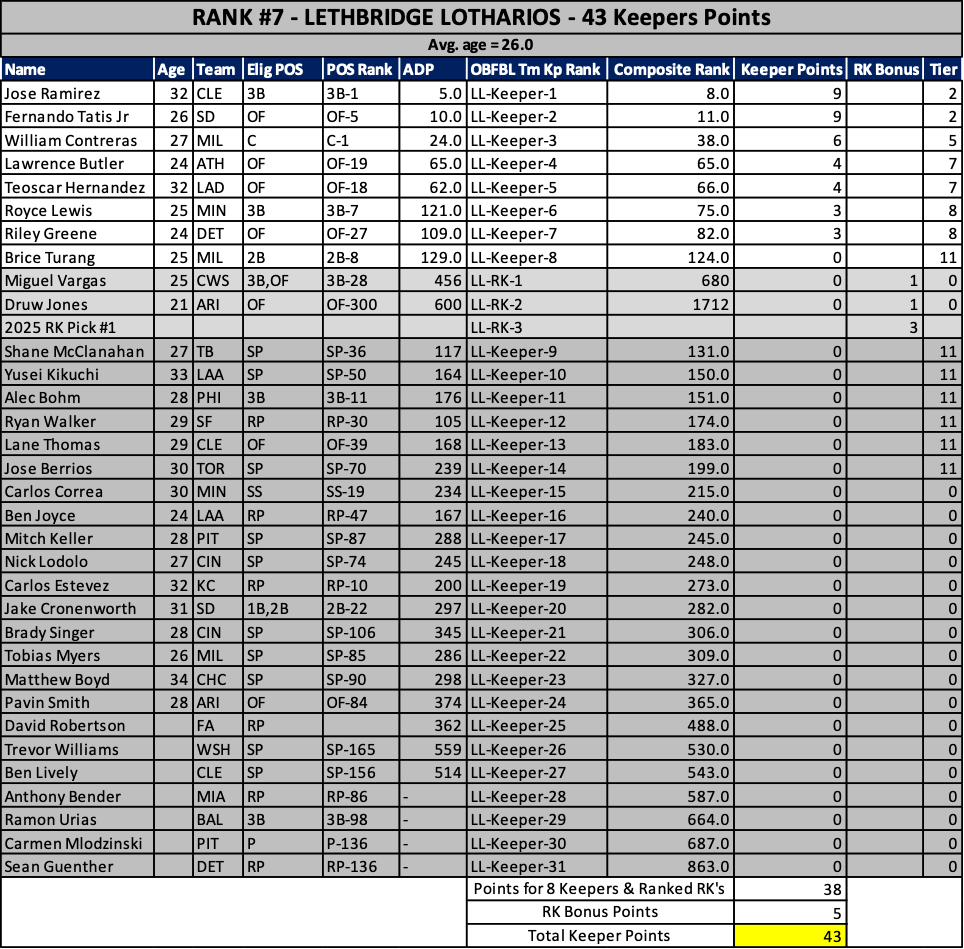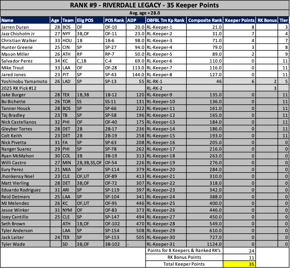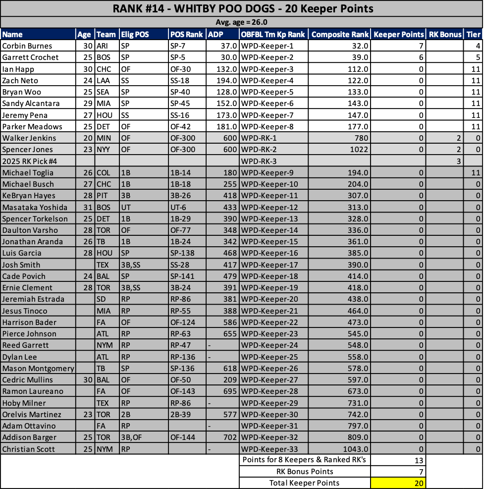 As we head into the 2025 keeper decisions, here’s how our rosters stacked up at years end…