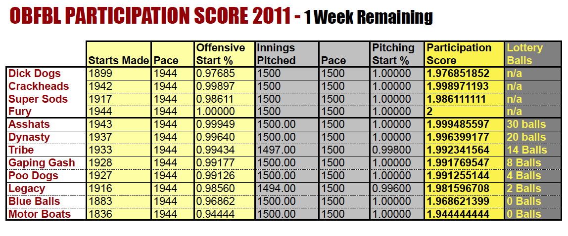 Obviously the Rookie Keeper Draft Lottery will look different given the number of RK picks that have been traded. Here is how the RK lottery would look: