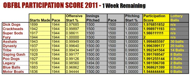 With one week left in the season it is interesting to project how the Draft Lotteries will shape up. Based on the “Pace” in Yahoo here are how each team is estimated to finish the season.